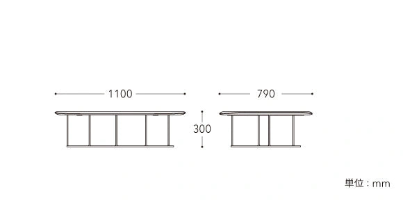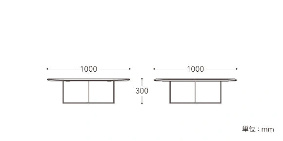 天板全周のカーブは、デザイナーと試作を繰り返したシリーズ共通の「特別なライン」。細い鉄脚が醸す浮遊感も新鮮な4種類のテーブルです。形、サイズ、高さ違いで組み合わせたり、ソファーまわりでトレー的に使うこともでき、住宅のリビングをはじめ公共空間のロビーやオフィスといった多様なシーンにフィットします。