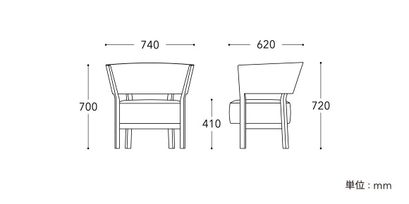 体を囲うように広がる大胆な木背が最大の特長。大空間に置いても見劣りしないその存在感と座るとパーソナルな空間を感じることから、リビングの一人掛けソファーとしてはもちろん、ホテルや空港など国内外のラウンジでも採用されています。
