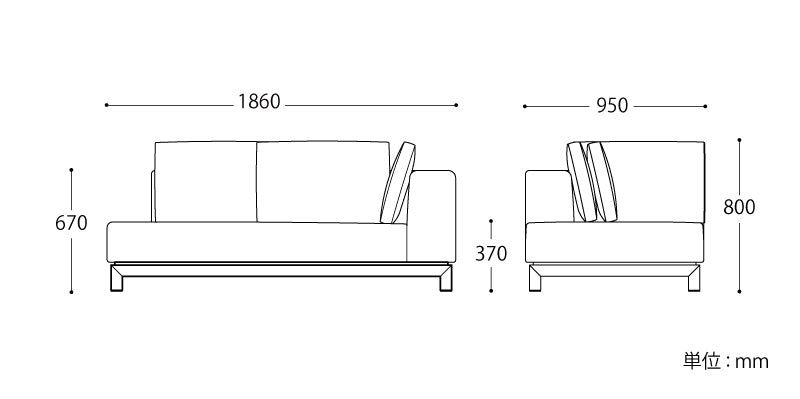巾950 奥1860 高800 座高370 肘高670(mm)