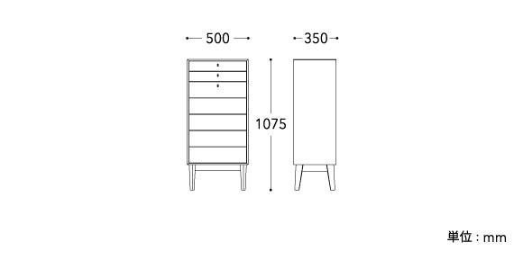 愛用の時計や指輪、またパスポートや通帳といった大切なものを保管する、隠し収納付きの小ぶりなチェスト。上3段はアンティーク調の鍵を引き手にして開けるつくり。引き出し底板を布張りにするなど、目につかないところにもクオリティを追求しました。下4段は引き手がなくすっきりしたタッチオープン式。高さが同じキュリオケースと並べると、ひとつの家具のような表情です。