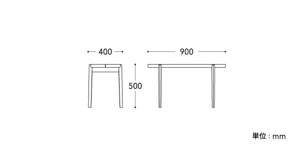 395mmという浅めの奥行きと、ソファーの間口に合わせた長さのバランスが新鮮です。エンドテーブルはソファーのアームサイドに並べたり、同デザインで高さの異なるセンターテーブルと組み合わせるなど、使い方のバリエーションも多彩。天板と脚の接合などディテールに趣味性が表れた無垢材のテーブルです。