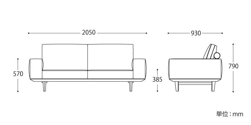 巾2050mm 奥930mm 高790mm 座高385mm 肘高570mm