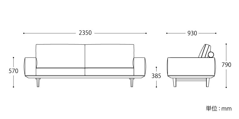 巾2350mm 奥930mm 高790mm 座高385mm 肘高570mm