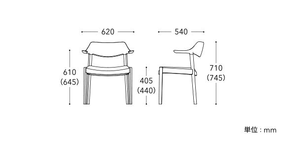 座るとすっと沈み込み、木背でありながら体が包み込まれるような座り心地です。佐戸川氏と技術者が高品質な椅子をつくろうと背の角度と曲面や座クッションを何度も試作し辿り着きました。余裕のある座幅と低めの座高は、リビングとダイニングを兼用するような、ゆったりとくつろぎたい方におすすめです。また、ダイニングテーブルに合わせやすい、35mm高い【Hタイプ】もご用意しています。