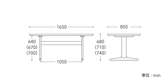 巾1650mm 奥850mm 高680mm(D:710mm/H:740mm)