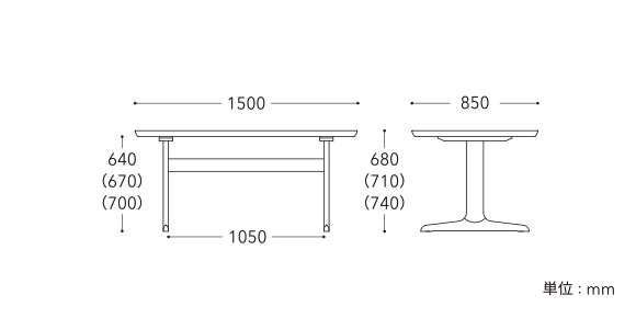 巾1500mm 奥850mm 高680mm(D:710mm/H:740mm)